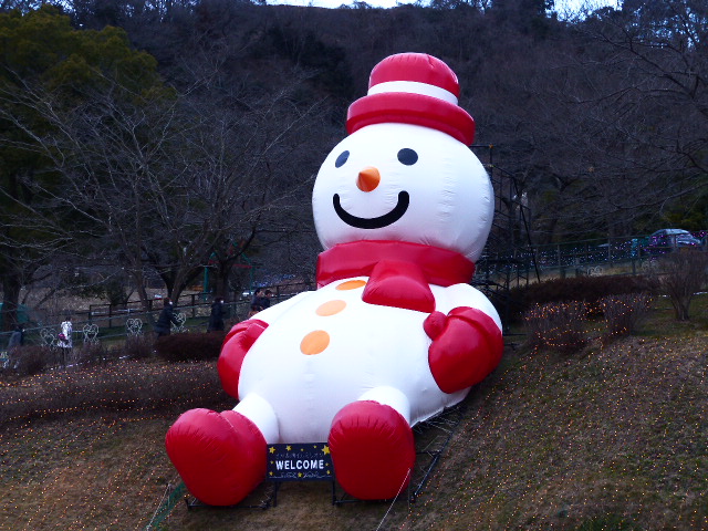 今回は横浜駅から直行バスで向かいました。途中保土ヶ谷バイパス→首都高速→圏央道→中央道のコース。やけにジグザグしているようですが、この経路が最も速いようです。入口そばには入らずなぜか中途半端なところで降ろされます。そこから上に上がり会場へ向かいます。入口では雪だるまがお出迎え。