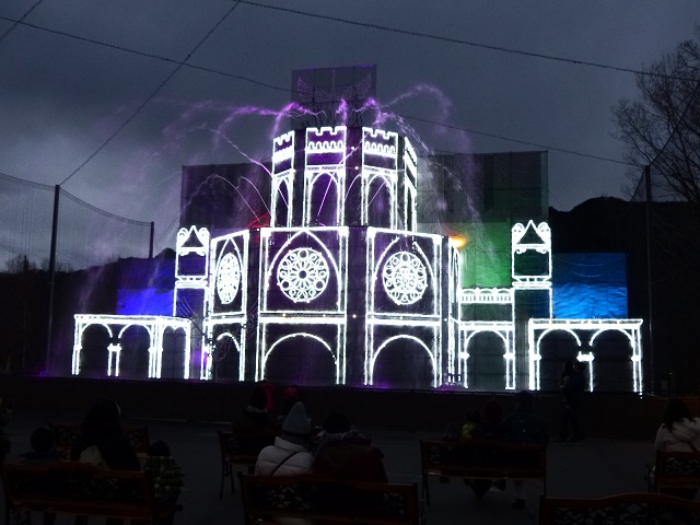 その中でお城のようなところがあり、いろいろと色が変わったりして楽しめました。