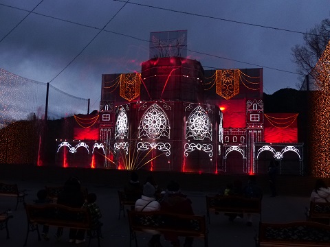 入場した時点ではまだ明るかったのですが、次第に暗くなりイルミネーションも輝いていきます。